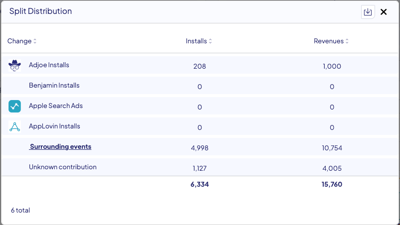 For example, in the following split, we’re seeing an Adjoe contribution, as well as Benjamin, ASA and Applovin. Each of those was measured and calculated for its incremental value separately, showing you which activity was the most impactful that day (In this case - Adjoe).