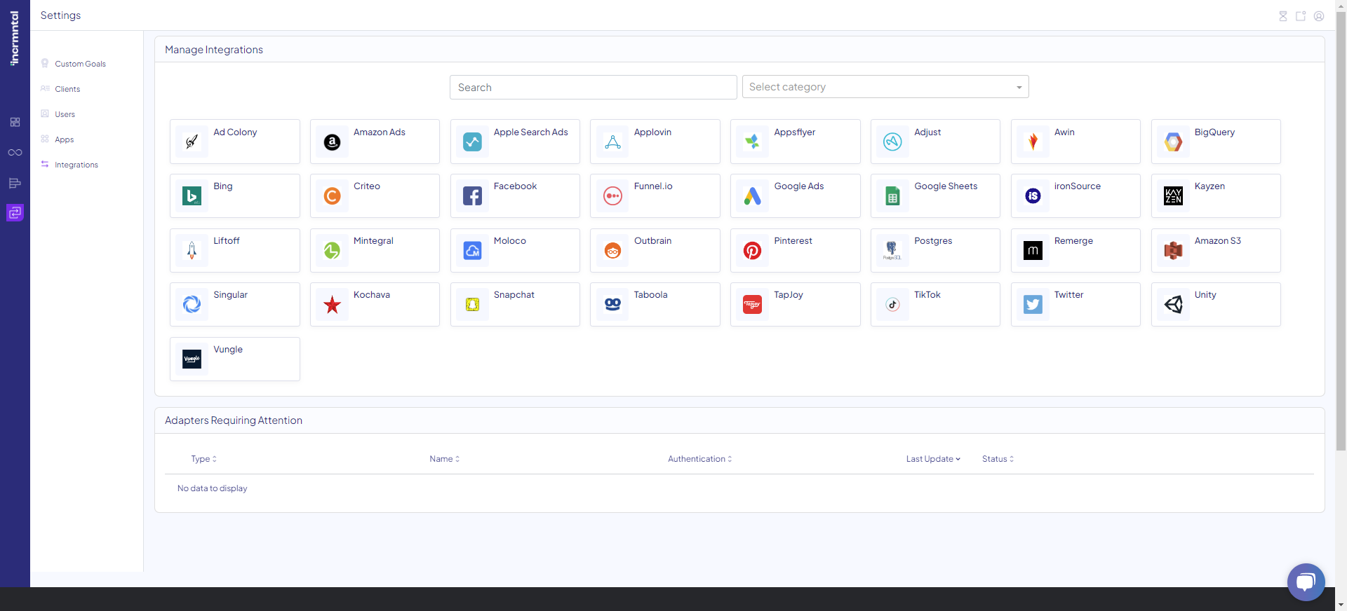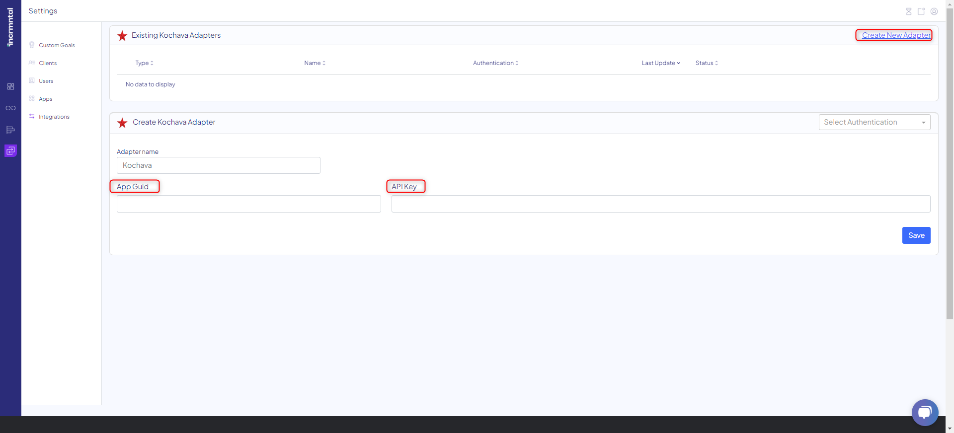 Note: In case you integrate with INCRMNTAL more than one app, please create an adapter per app, by clicking "Create New Adapter" for every new app.