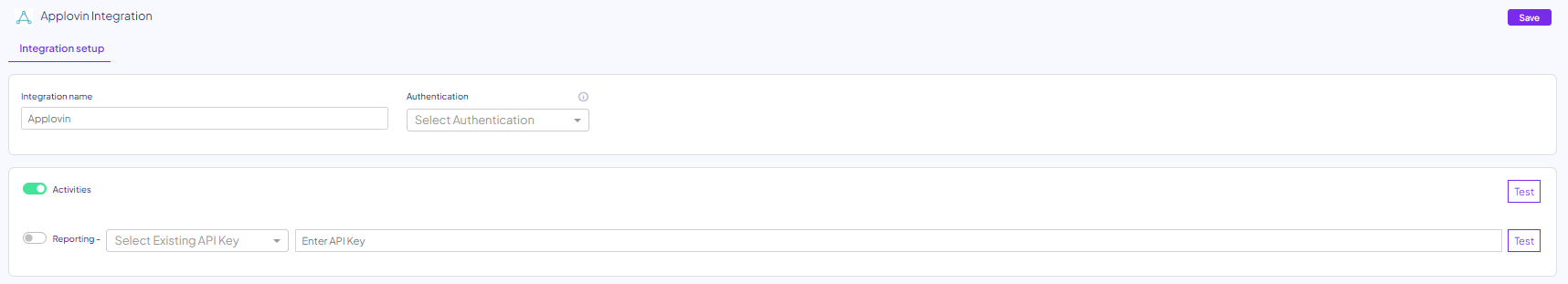- For pulling the platform's Reporting, you need to add your API key in the respected row.