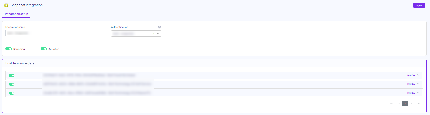 7. Once authenticated, you'll be able to see the ad accounts within Snapchat. Enable the relevant ones you see in this list.