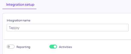 - Enable the 'Activities' box. If you wish we'd pull the spends directly from this network, please enable 'Reporting' as well.