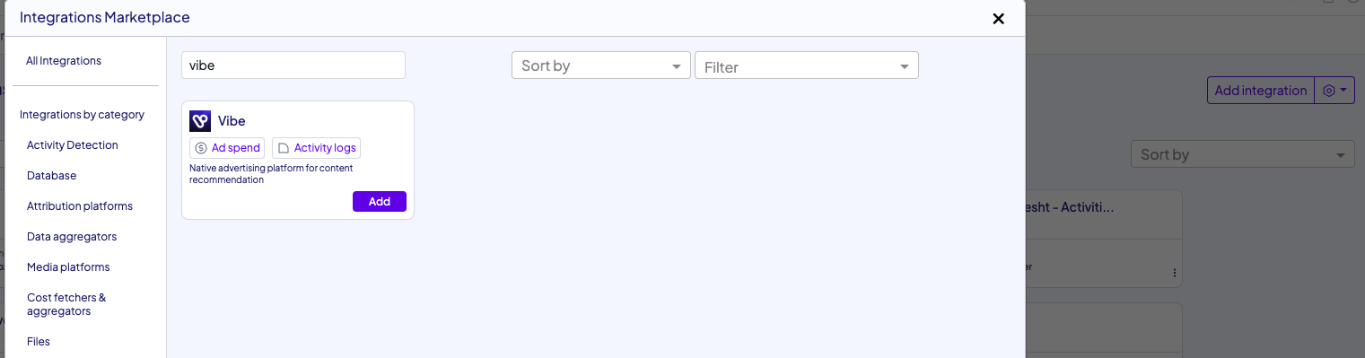 Find and select VIBE from the list of available integrations.