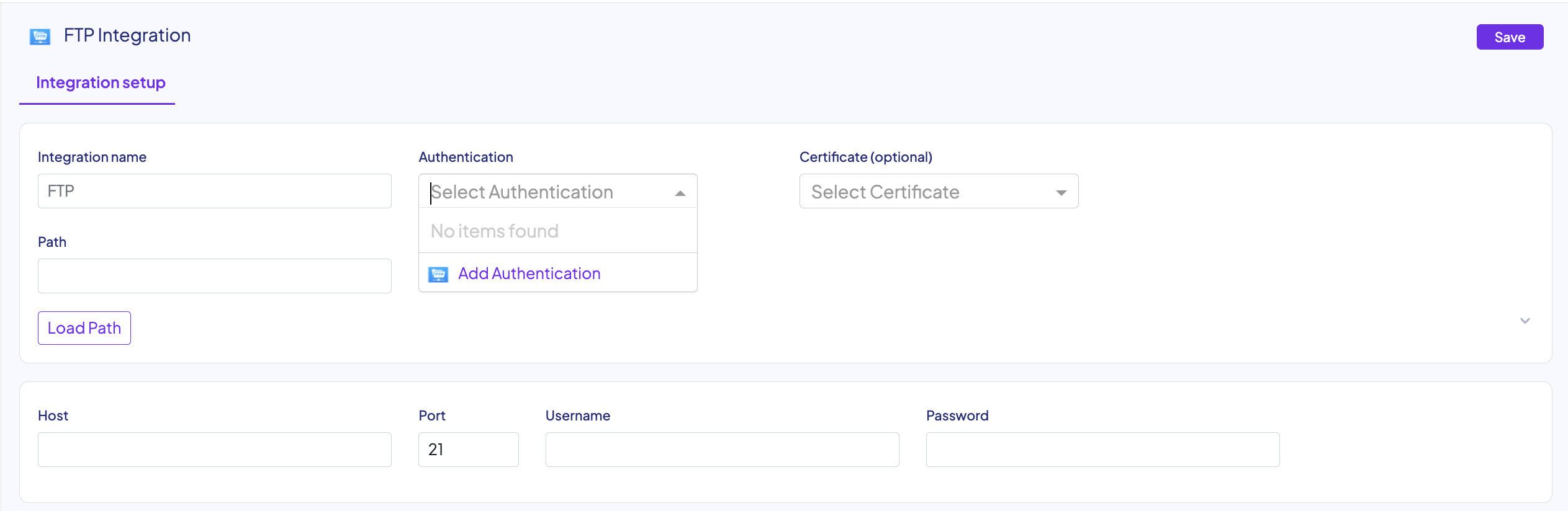 Note: Your existing user needs to have Admin permissions to integrate new FTP