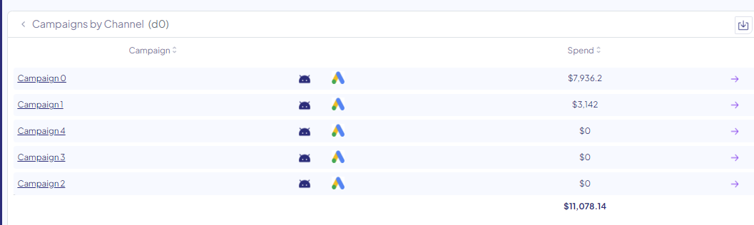 4. Select the campaign within the channel that you'd like to measure. You can either select it from the table below the main dashboard, or type-search it in the top filter row.