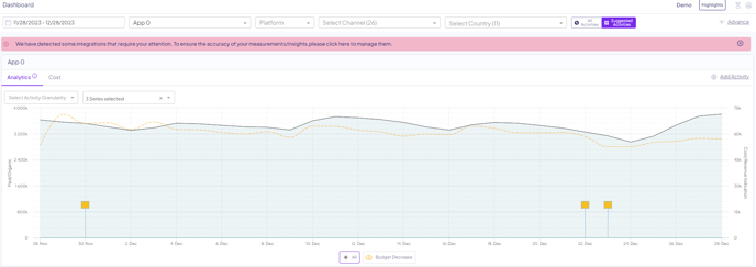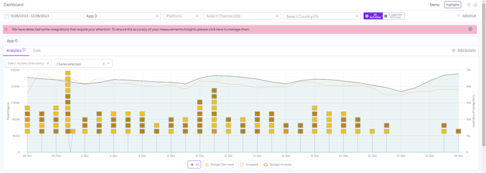 If there are no spends indicated in the integrated source - it will not be possible for us to indicate or measure the changes in spend. If there's another source we should be taking spends from that are missing, please raise this to us by opening a support ticket.