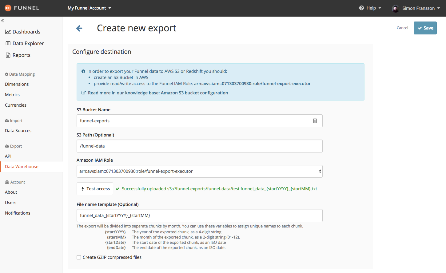 For more information, you can visit the Funnel.io guide for exporting data to S3