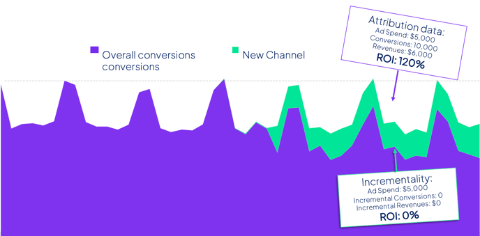 In the above example - while tracking would show you that the newly opened channel created 10,000 conversions - incrementality would show you 0, given the fact the overall conversions remained the same as before