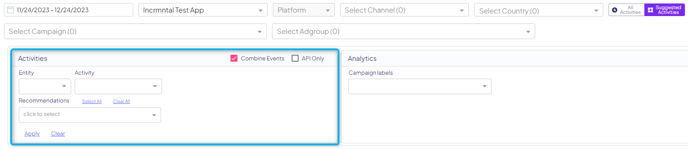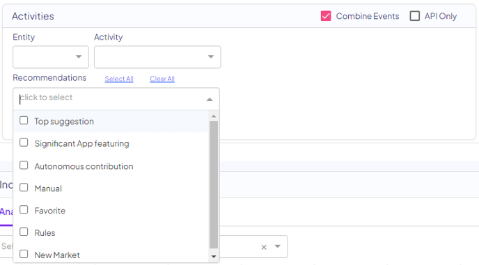 It is also possible to disable the Suggested Activities filter, in case you'd like to review all the different changes in spend on a certain entity.