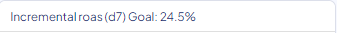 Let's take the following example, where a customer defined a ROAS goal of 24.5% for ROAS d7.