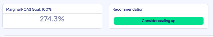 For instance, when creating a ROAS goal, the platform will utilize the defined benchmarks and will create the recommendations according to this goal, and the incrementality showing for your ROAS within each result.