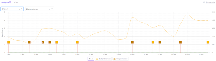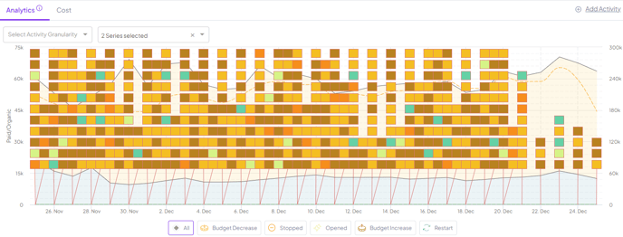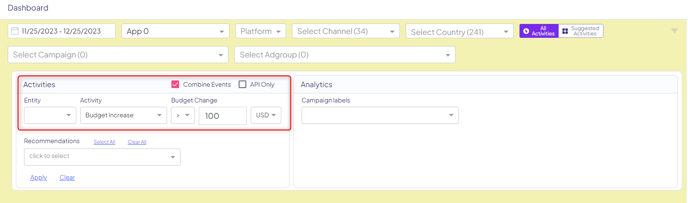) , you’ll be able to filter activities on the board based on the activity and the size of change (based on % of change or amount of spend). Don’t forget to click ‘apply’ once set to filter the dashboard!