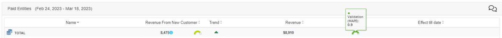 - During this time, we calculate the MAPE - mean absolute percentage error, for each of the created 9 predictions for each KPI. It is also presented in the result for your convenience.
