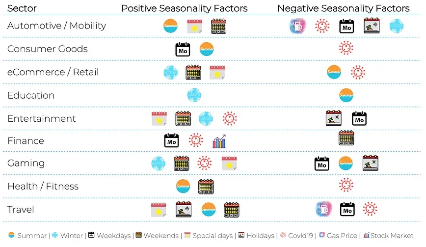 Looking at the different sectors, seasonality components have an impact (negative or positive) over each sector