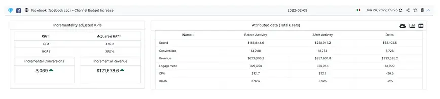 The following measurement results (from the INCRMNTAL platform) are two measurements made by a D2C / Retail Advertiser, Spending with Facebook around a major seasonality event – Mother’s Day.