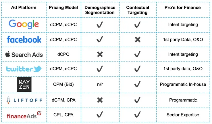 Financial Apps seek very specific audiences. Whether the product is an eWallet, a Digital Bank, or a Trading Platform allowing users to trade in stock or crypto currencies - Financial Advertisers usually cannot afford advertising to everyone hoping for the few who convert to engage.