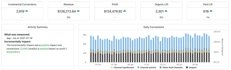 In another case study, a customer found that getting featured within their app category, did create lift – however, as many of their paid media campaigns were using Cost Per Install pricing – much of the value was taken away from organic results to paid channels. In this case study, the customer saw incrementality for conversions and revenues, but the incrementality over profit was limited due to the increase in spend.