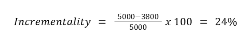 Incrementality measures the percentage of conversions that occurred only because of the marketing effort. It is calculated as: