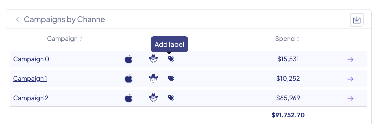 Campaign labeling allows you to group campaigns across multiple channels using a consistent label, as long as the campaign name contains a unique and identifiable component. This makes it possible to analyze campaigns by product, objective, or strategy, rather than by individual platform or network structure.