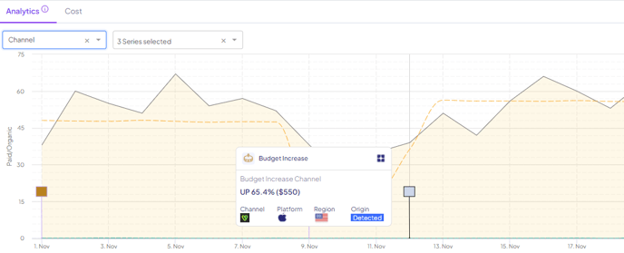Our platform is able to detect changes in spend automatically, based on the integrated spend we have per entity (channel, campaign, or adgroup).