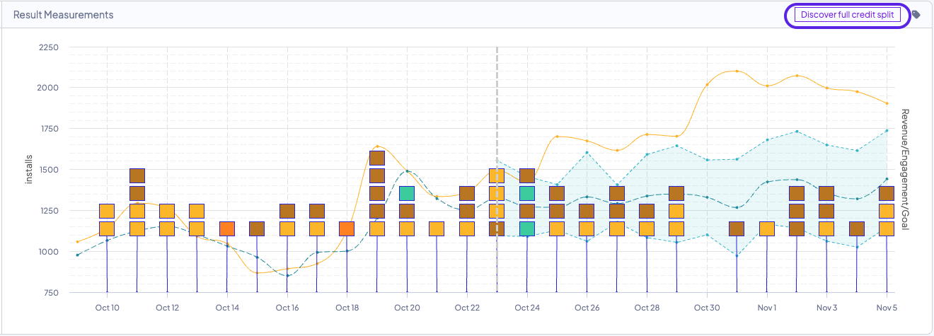 The split distribution can be reviewed by clicking the "Discover full credit split" icon on the top right corner of the graph.