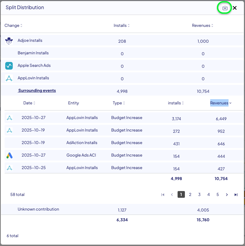 For example, in the following split, we’re seeing an Adjoe contribution, as well as Benjamin, ASA and Applovin. Each of those was measured and calculated for its incremental value separately, showing you which activity was the most impactful that day (In this case - Adjoe).