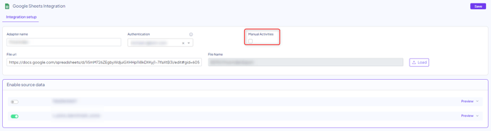 After integrating the sheet, click the checkbox titled 'manual activities'. Click 'Save'.