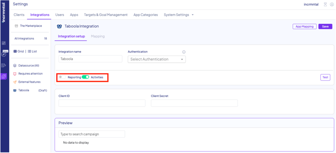 This article explains how to integrate your Taboola account, allowing the INCRMNTAL platform to read any marketing activities performed in your account.
