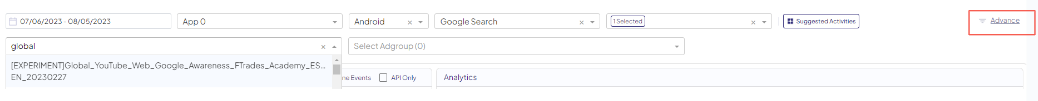 5. Select the granularity filter to show campaign level activities