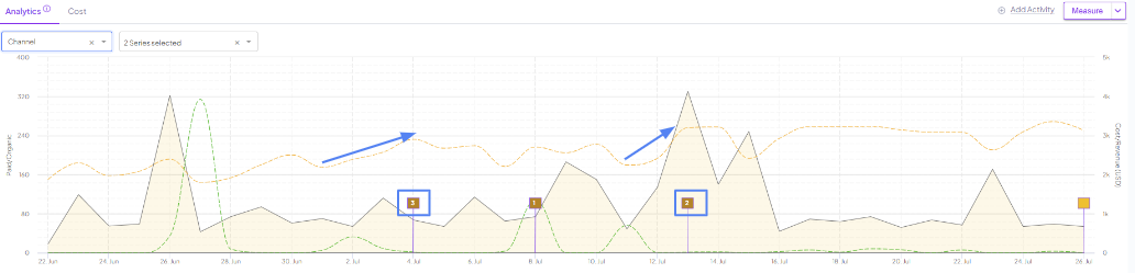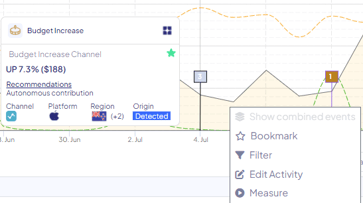 To measure this change in spend's impact, all we need to do would be clicking on the activity flag, and select "Measure"