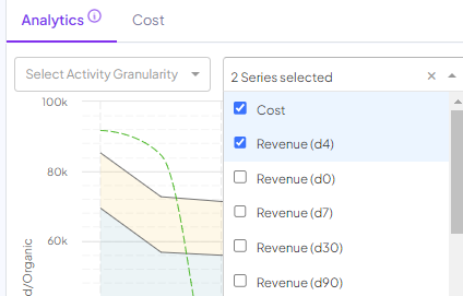 - You can review your cohorted metrics by selecting them in the main dashboard drop down: