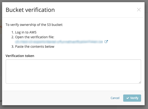 Once you have saved your configuration you will need to verify the bucket is correct.