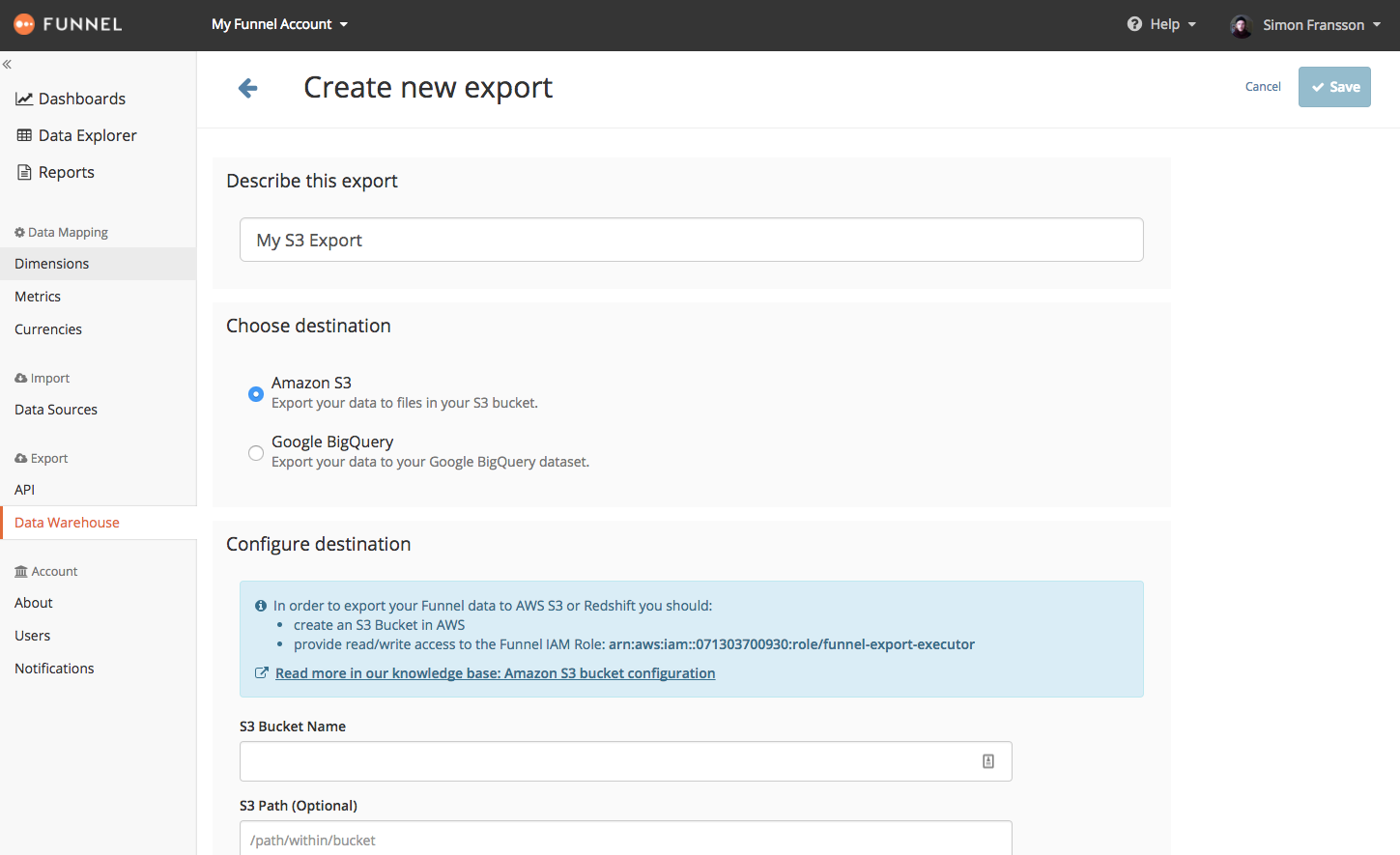 For more information, you can visit the Funnel.io guide for exporting data to S3