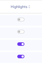 To add an existing member on the dashboard to the highlights email, Admin users can access the Users tab in the Configuration screen, and enable the Highlight feature by switching the toggle: