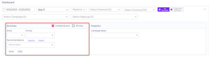 Existing filters will also apply while adding the Activities filter.