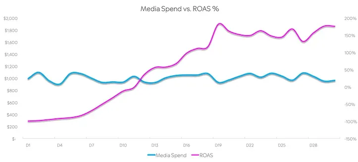 Here’s an example Media Spend vs. ROAS in a daily view:
