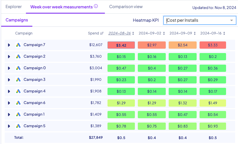 Insightful, Cross-Dimensional Analysis: By breaking down the performance of each campaign within a channel, marketers can optimize on a tactical level rather than making broad, channel-wide changes. Marketers can now measure and compare campaigns across iOS, Android, Web, TV, Connected TV (CTV), and influencer marketing channels, making it easy to evaluate performance in an integrated, cross-channel context.