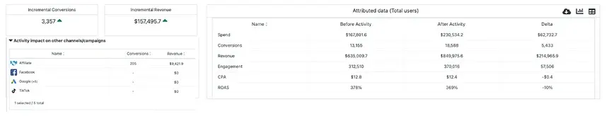 But this measurement is also showing that several of the advertising channels used by this Advertiser “enjoyed” additional sales and revenues attributed to them. These additional sales and revenues are the result of Black Friday sales, rather than a sudden improvement in the results obtained by the campaigns.