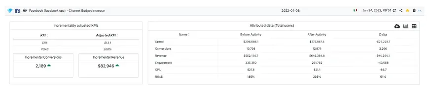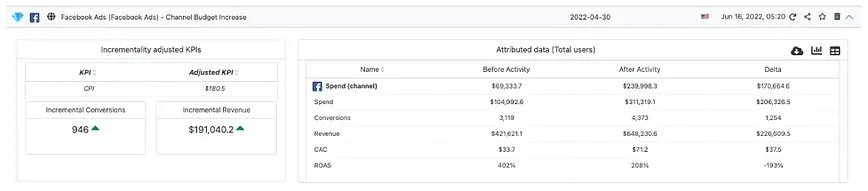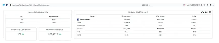 The following measurement results (from the INCRMNTAL platform) are two measurements made by a D2C / Retail Advertiser, Spending with Facebook around a major seasonality event – Mother’s Day.