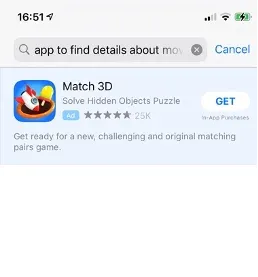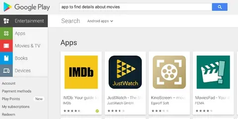 In the example below, we searched “App to find details about movies”.